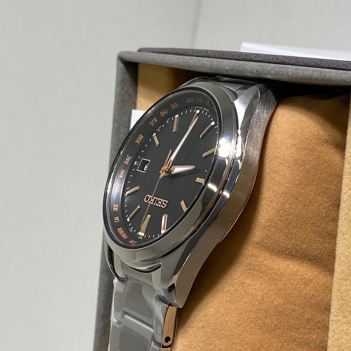 ・Genuine Seiko Selection World Time Comfortex Titanium Made in Japan Radio Solar Powered Men's Wrist watch SBTM293 SEIKO SELECTION Analog Black