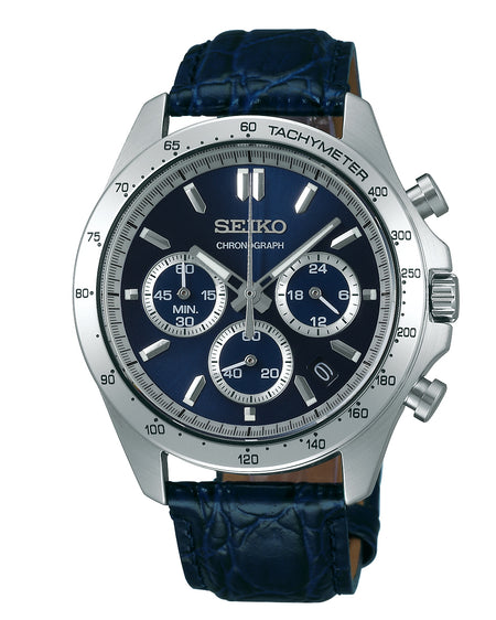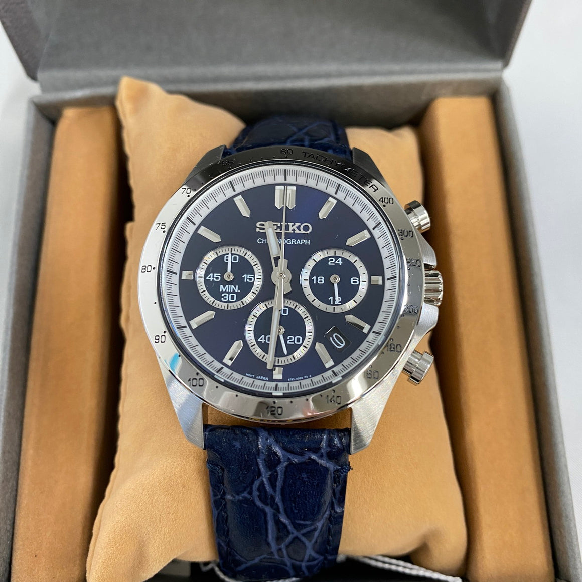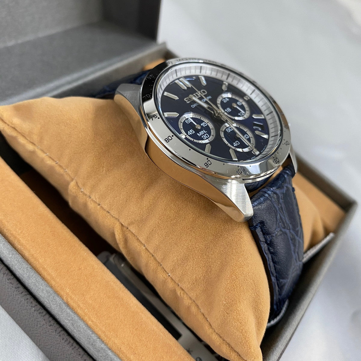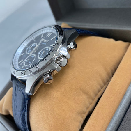 ・Genuine Seiko Selection Chronograph 1.7" Quartz Men's Wrist watch SBTR019 SEIKO SELECTION CHRONOGRAPH Analog Blue Leather Belt