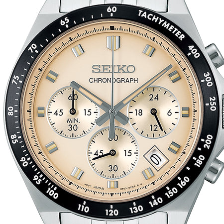 - The design of the indexes and hands, as well as the multi-row metal bracelet, are reminiscent of the Seiko chronographs of the past, but the design is a new style that matches the solid case shape.