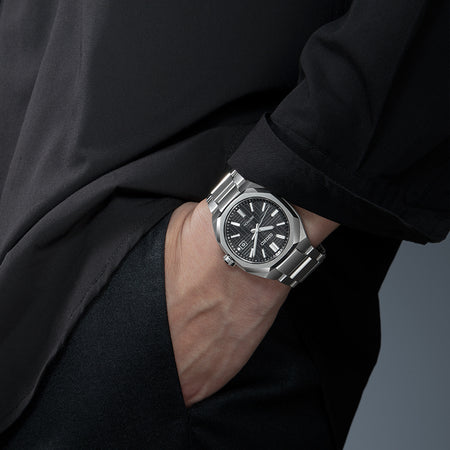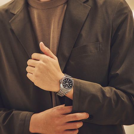 - The dynamic and powerful metal polygonal rim gives an exclusive presence on the wrist, and the edgy solid titanium case and high-quality three-row bracelet create a bold and stylish atmosphere.