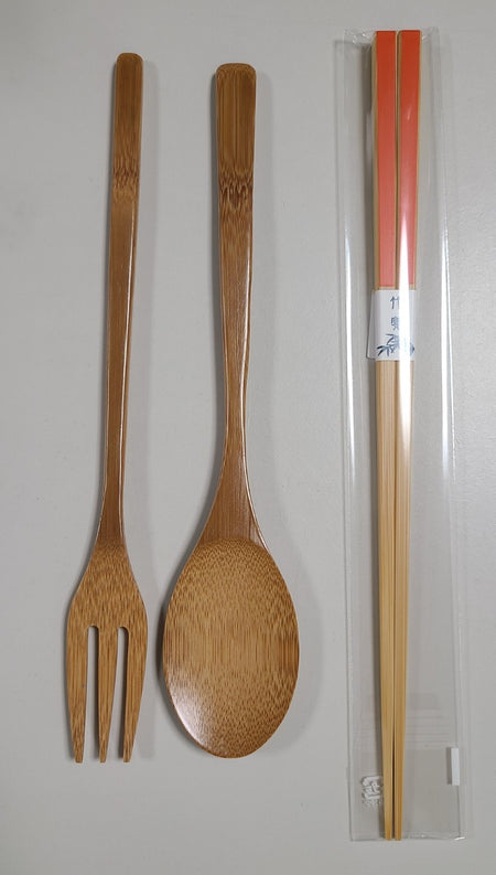 Traditional Japanese Smoked Bamboo Bento Lunch Box & Three Bamboo Cutleries