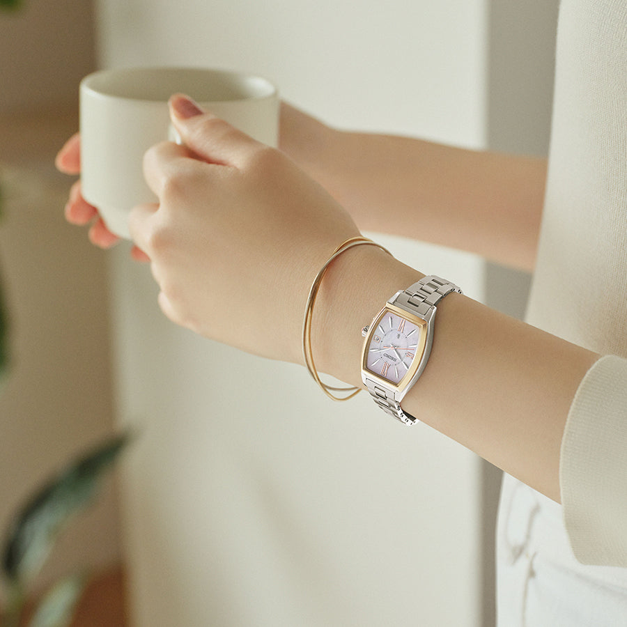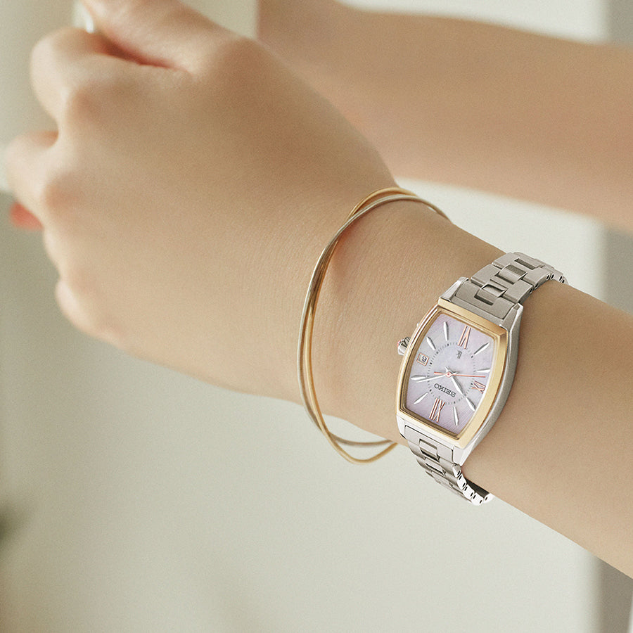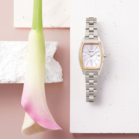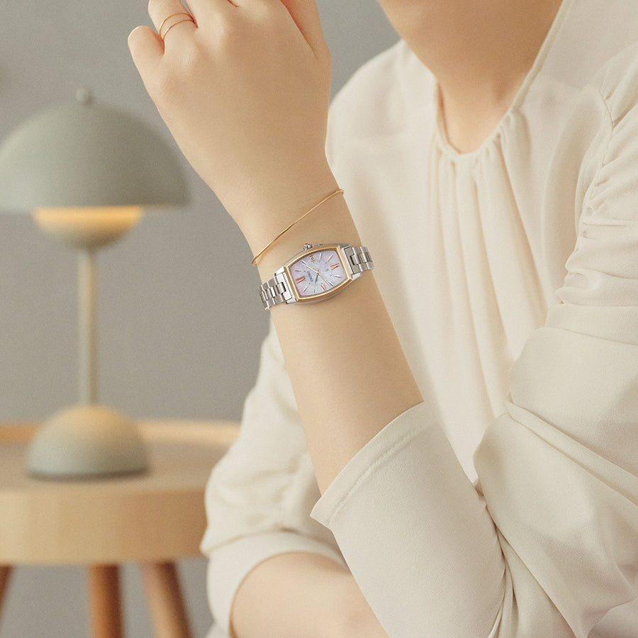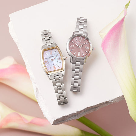 ・The combination of the champagne gold edge and the white pearl-based pale pink gradation dial creates a beautiful design that gives off a sophisticated feminine look.