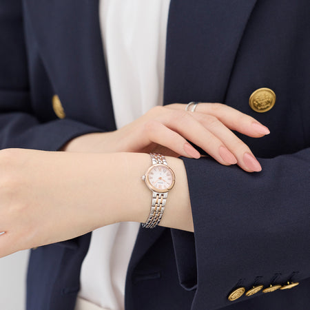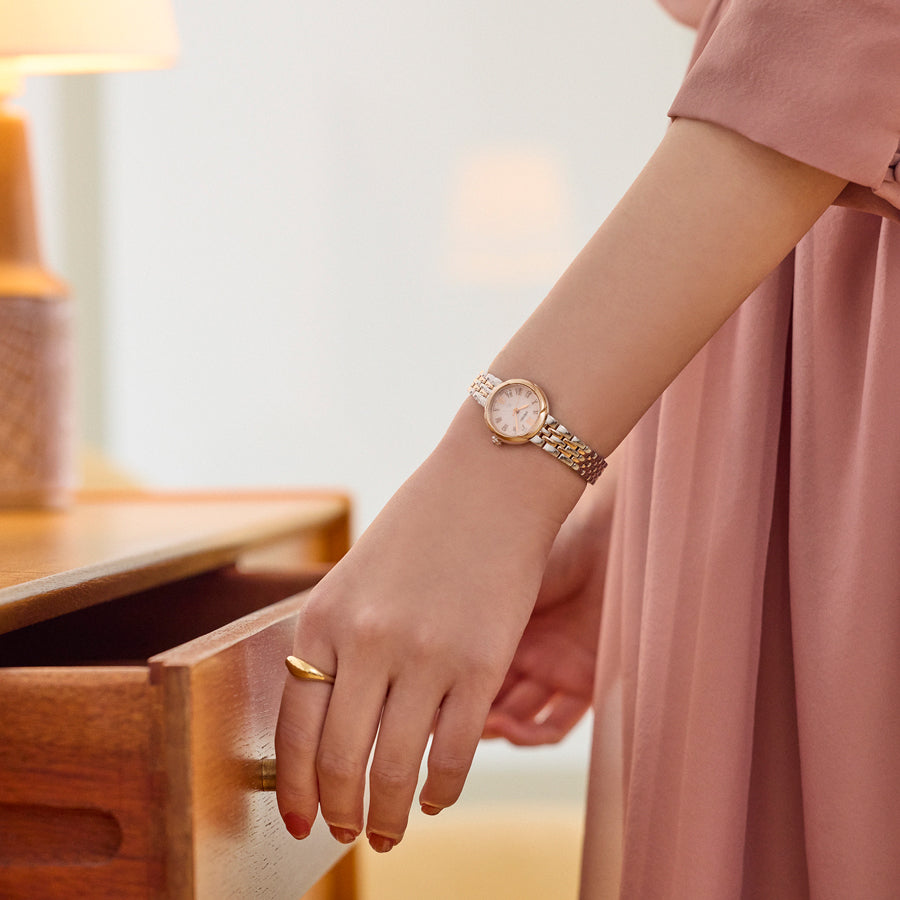 The small size ensures visibility as a watch while creating a delicate and feminine look.