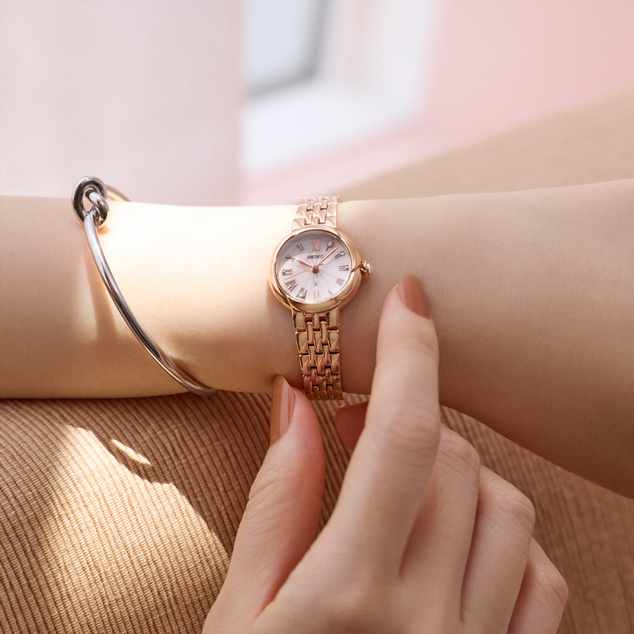 The small size ensures visibility as a watch while creating a delicate and feminine look.