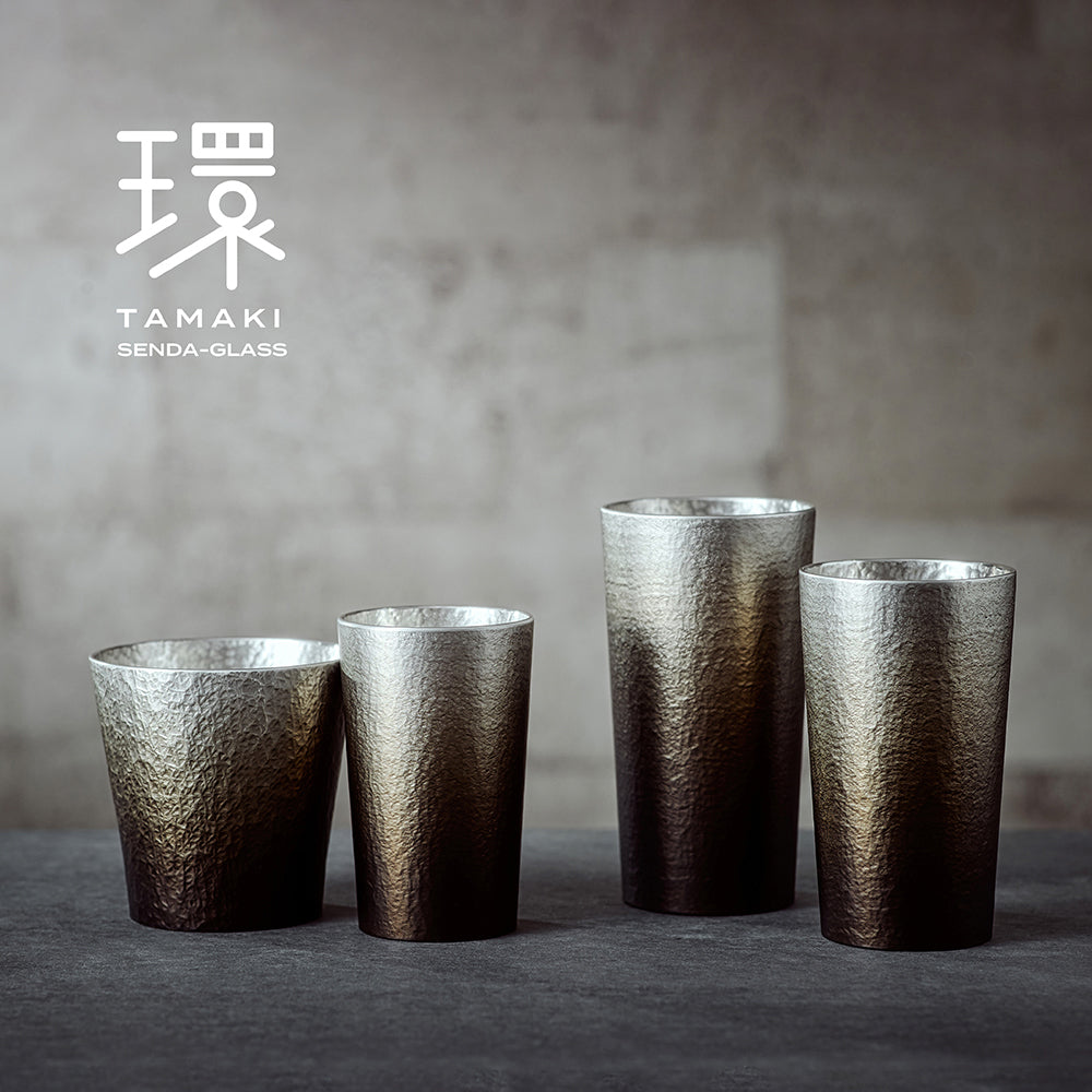Senda Glass Tableware's original tin tumbler, Tamaki series, Black color.