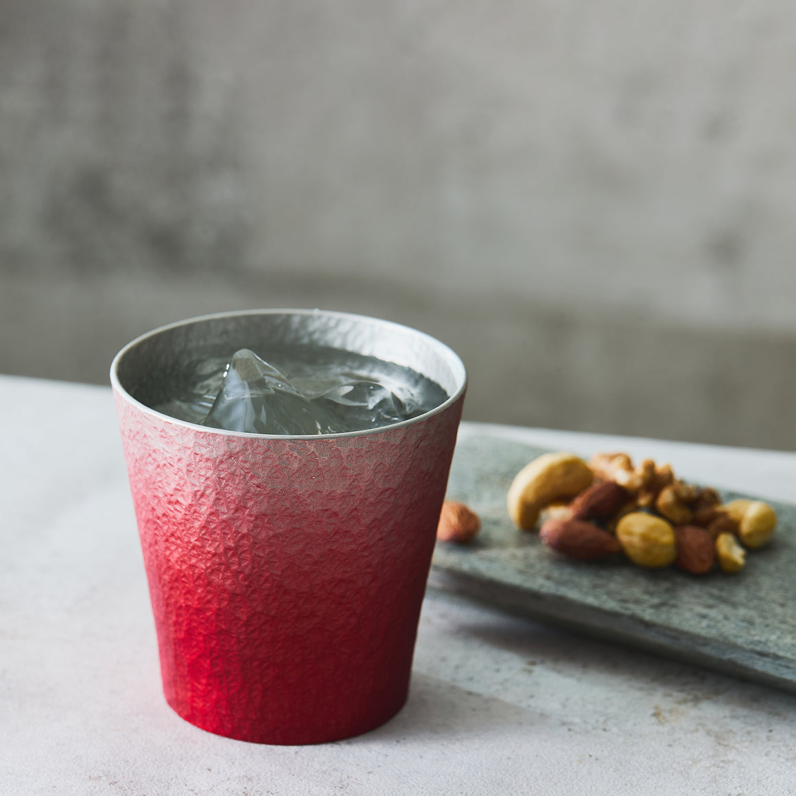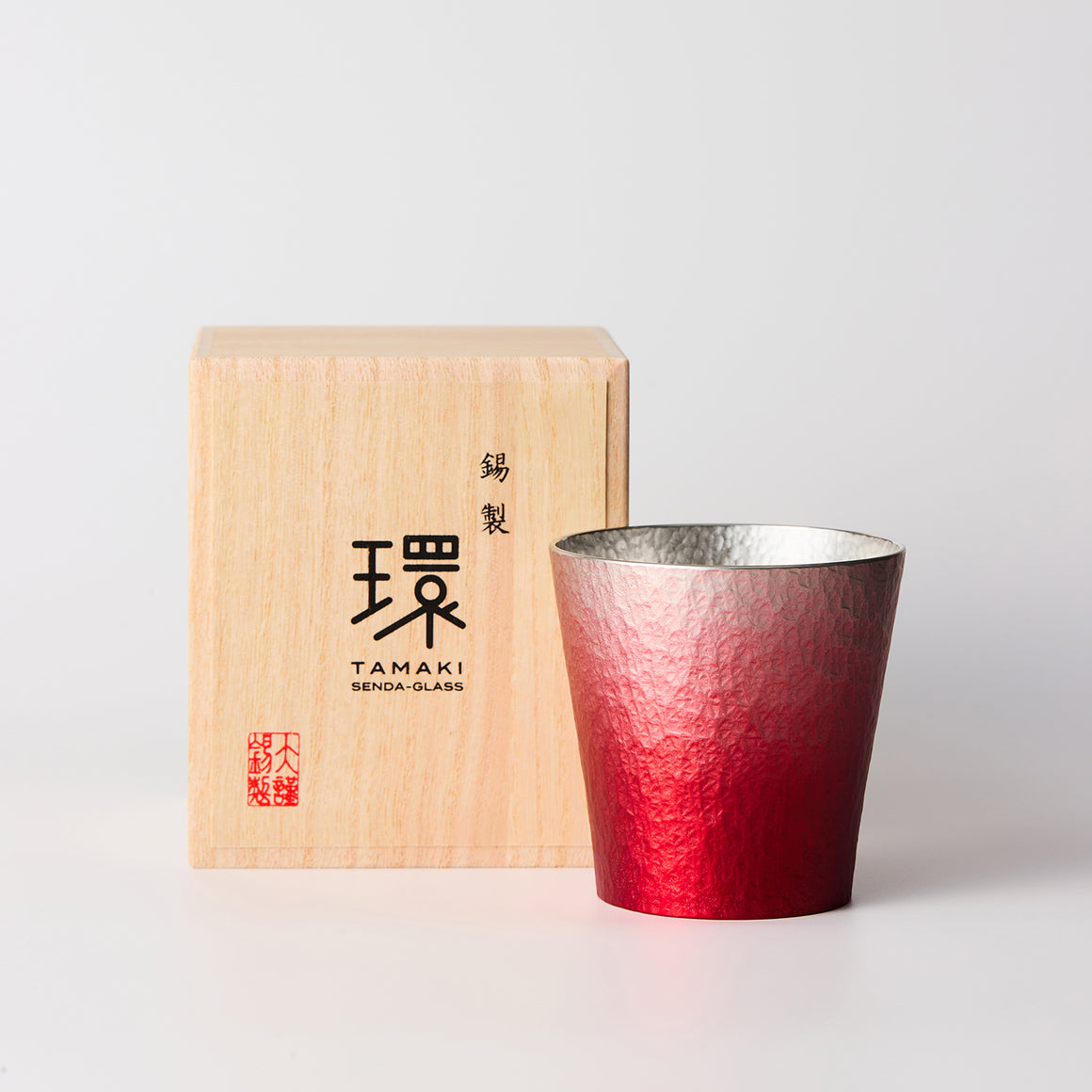 Senda Glass Tableware's original tin tumbler, Tamaki series, Rose Red color.