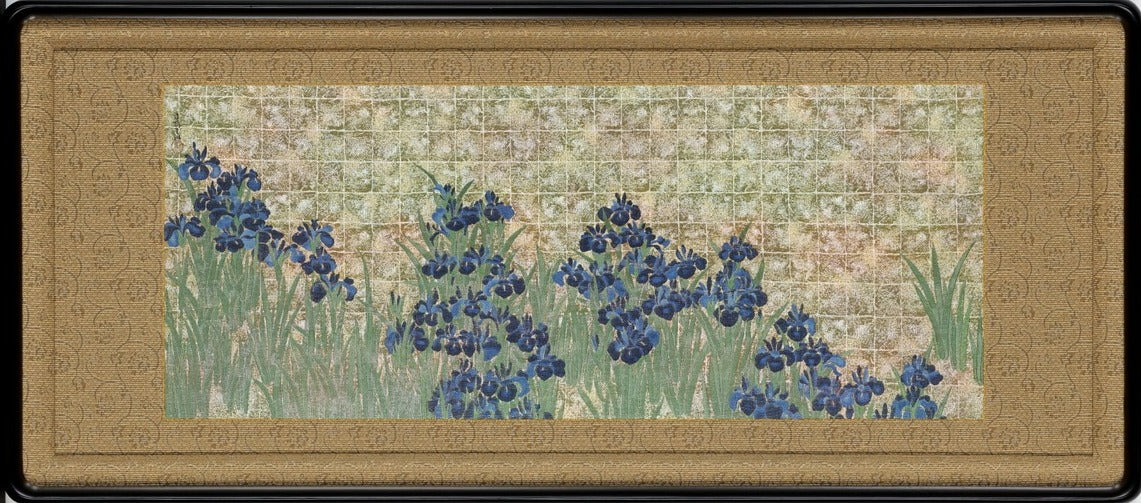 The work is a vivid depiction of a cluster of irises in shades of ultramarine and green-blue. He rhythmically depicts the irises while calculating the contrast with the paired right panel. Another characteristic of Ogata Korin's works is that many of their dates of production are unknown.