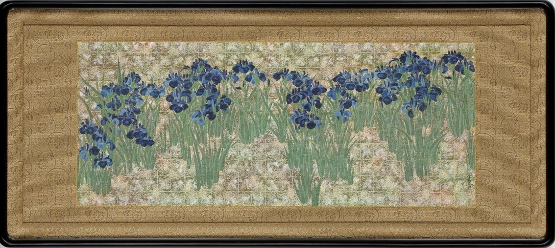 The work is a vivid depiction of a cluster of irises in shades of ultramarine and green-blue. He rhythmically depicts the irises while calculating the contrast with the paired left panel. Another characteristic of Ogata Korin's works is that many of their dates of production are unknown.