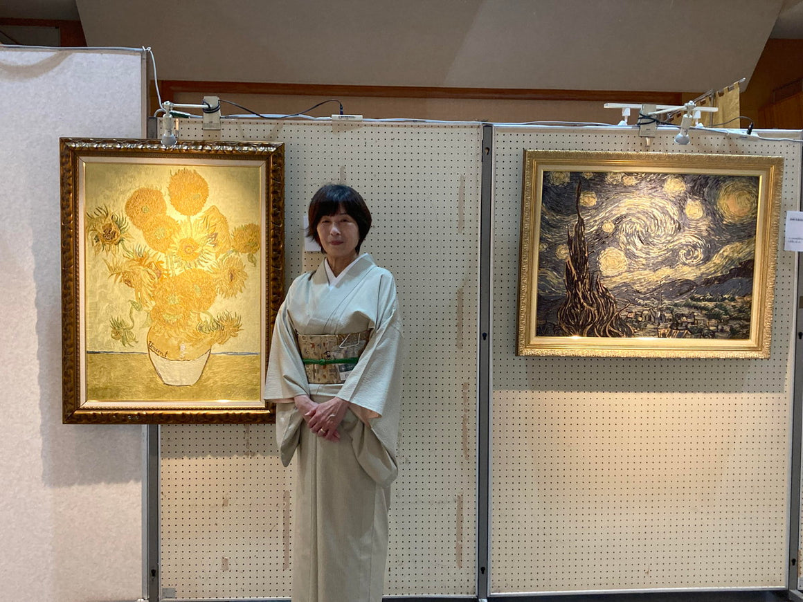 Van Gogh, a world-renowned painter, was fascinated by ukiyo-e prints, which were popular during the Edo period in Japan. We have exquisitely reproduced his paintings using the finest weaving techniques of Kyoto Nishijin Textiles. We have carefully reproduced his color gradations and paint touches. These Van Gogh paintings were produced by three excellent weavers who worked on Van Gogh, and only they could produce Van Gogh's subtle color expression. However, since the weavers are already elderly, we recommend that you purchase these textile works now.