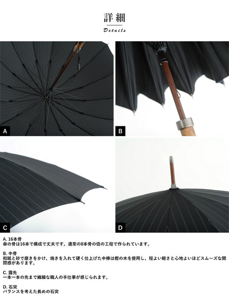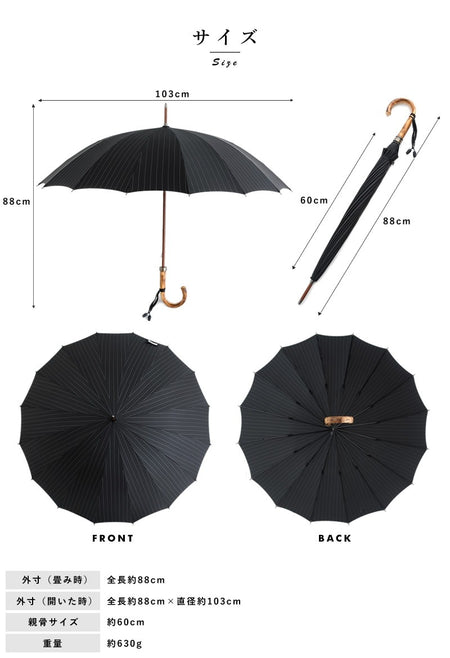 This 16-rib umbrella is from Maehara Koei Shoten, a long-established umbrella brand that has been supplied to the Imperial Household.