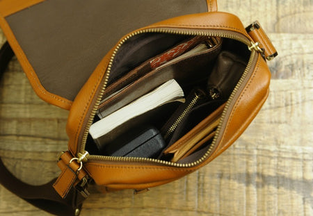B. Zipper pocket under the flap: It is slightly shallow, making it ideal for storing items such as a pass case.