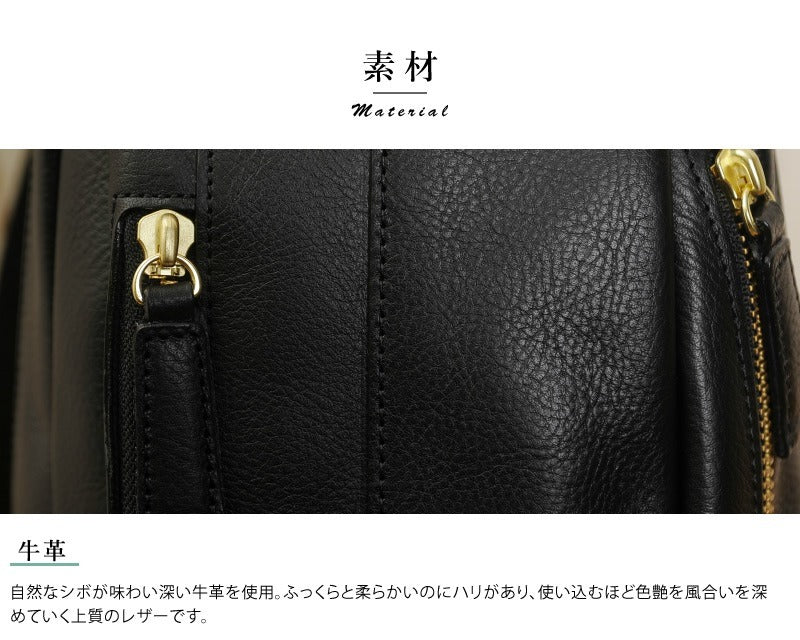 The material used is cowhide, which naturally brings out the charm of leather. It is a high-quality leather that is plump and soft, yet firm, and the more you use it, the deeper its color and texture will become.