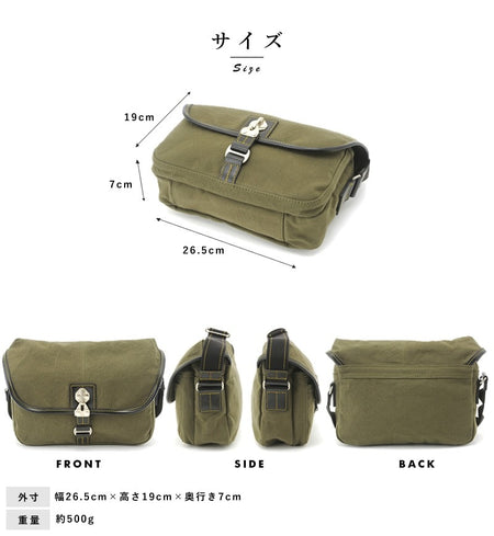 Toyooka Bag Mini Shoulder Bag crossbody Straight Canvas Kahki Made Japan NEH001