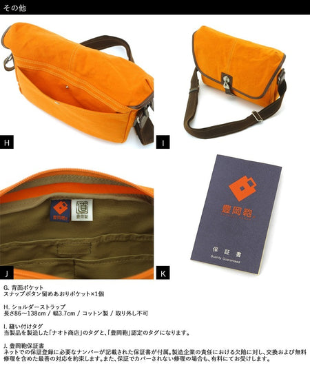 I. Sewn-in tags: This is the tag of "Naoto Shoten", the manufacturer of this product, and the "Toyooka Bags" certification tag.