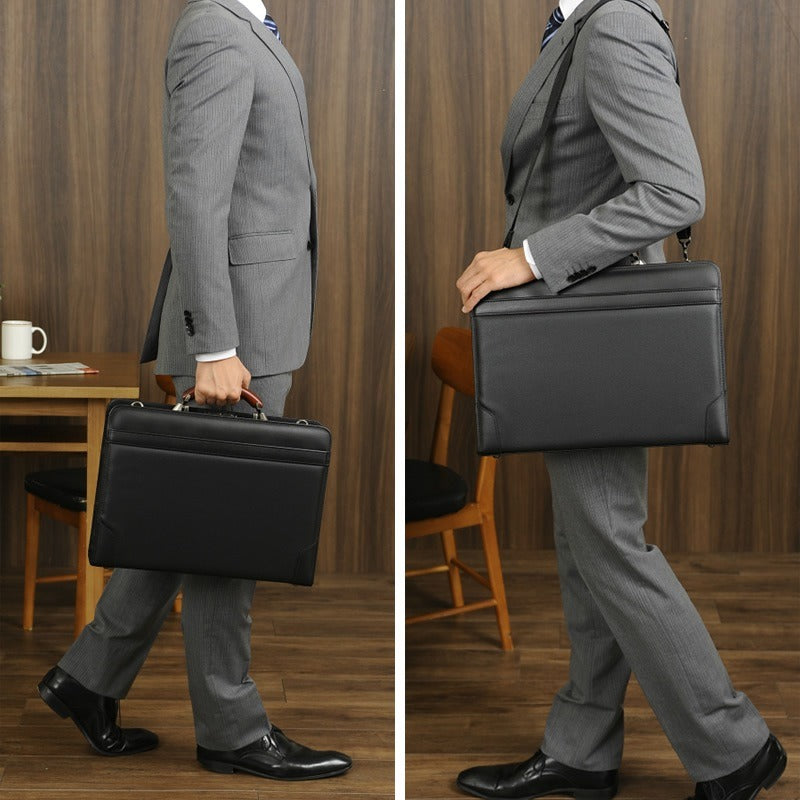 It comes with a shoulder strap so you can wear it over your shoulder, and it stands firmly on the floor, making it the perfect business bag. - Features
