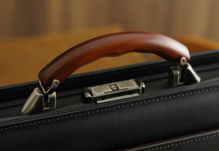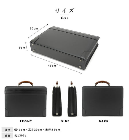 This Toyooka Kaban certified Dulles bag has a natural wood handle that exudes a sense of luxury.