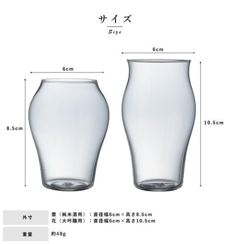 Size Note:Bud (for Junmai sake): Diameter 6 wide x 3.3 high Flower (for Daiginjo sake): Diameter 6 wide x 4.1 high Weight: 48g (per piece)