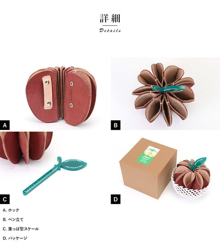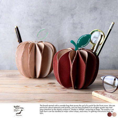 This playful apple-shaped pen stand is made of Tochigi leather floor leather.