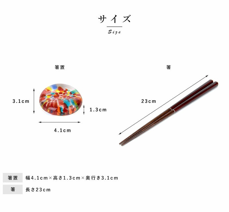 ・Chopstick rest: width 1.6" x height 0.5" x depth 1.2" ・Chopsticks: length 9.1"