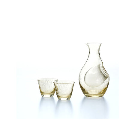 - 3-piece sake set: 1 tokkuri with ice pocket + 2 sake cups, Takasegawa amber