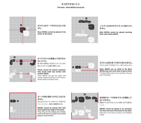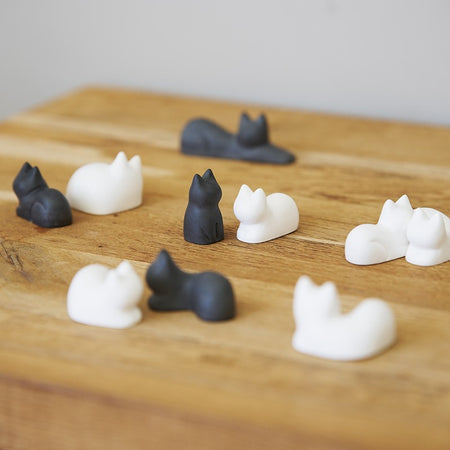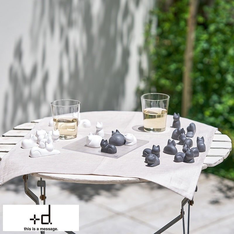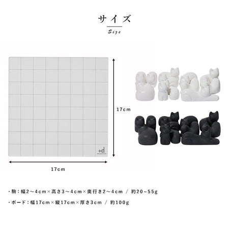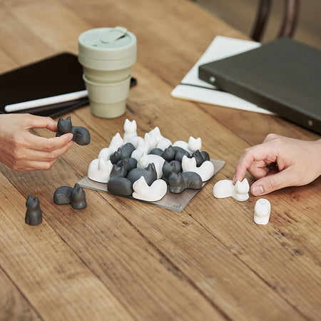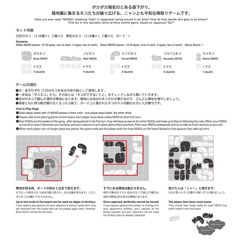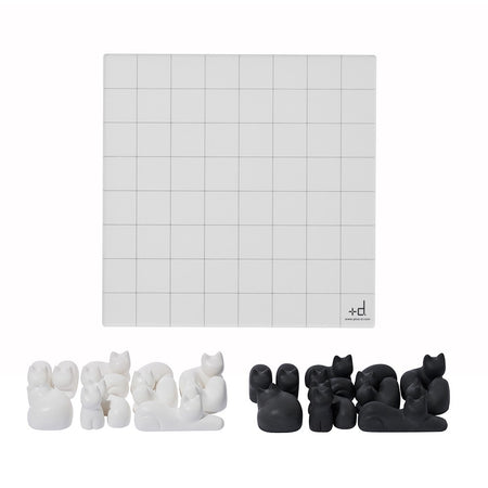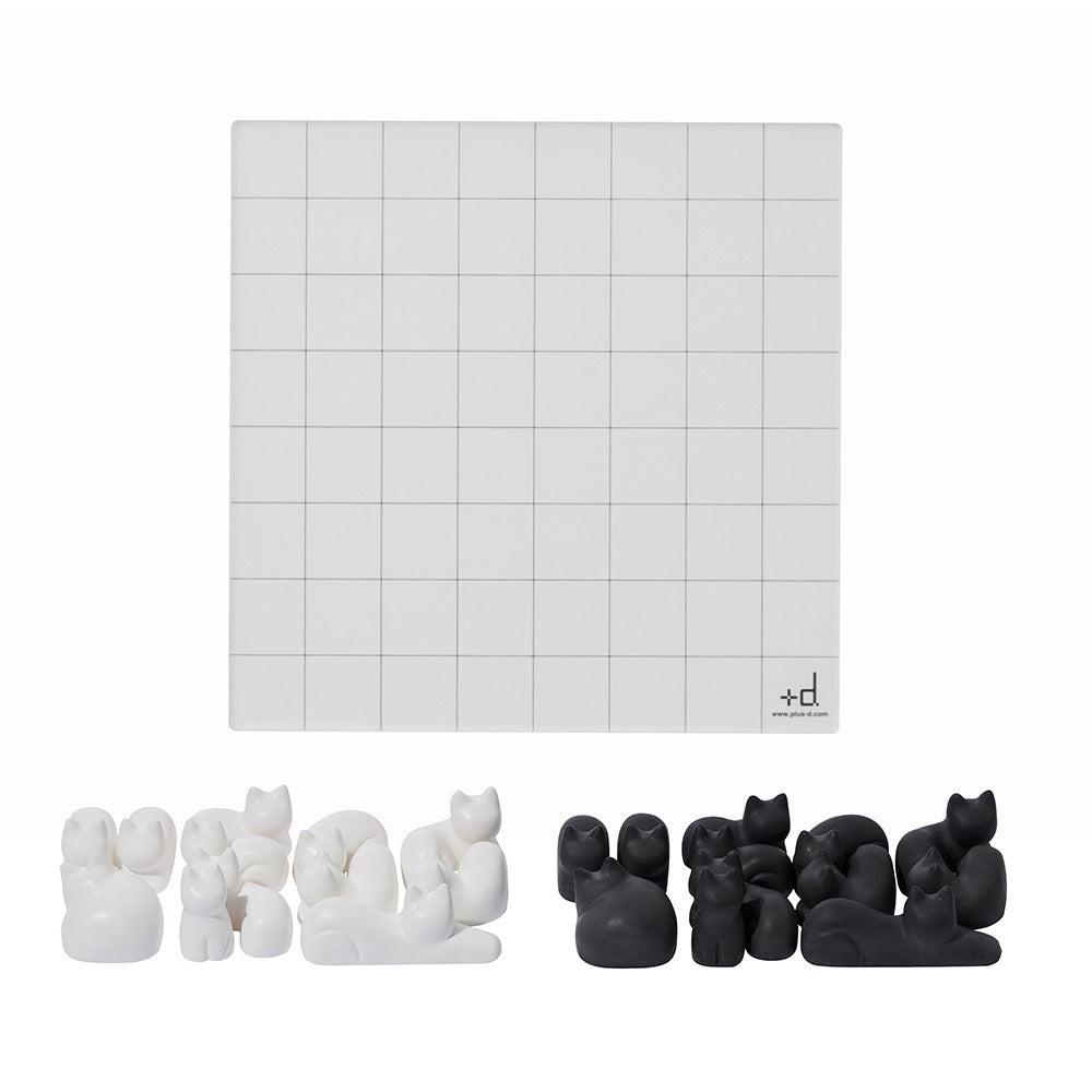 The game is played by alternately placing black and white pieces on the board, with the winner being the player with the largest area of cats on the board.