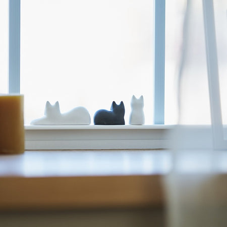 The pieces are made by hand of a plaster material that feels soft, smooth and cool in your hand.