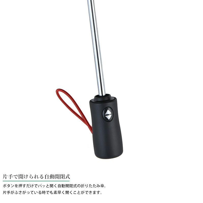 Automatic folding umbrella that opens and closes at the push of a button. The umbrella can be opened quickly even when one hand is occupied.