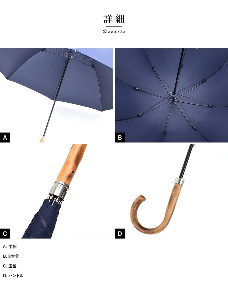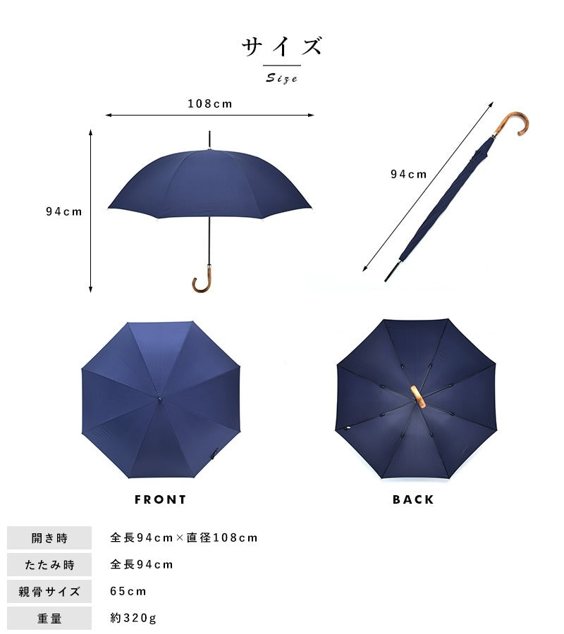 This umbrella is made of super water-repellent fabric and can be used in both sunny and rainy weather. The slim silhouette and natural wood handle make this umbrella both functional and beautiful.