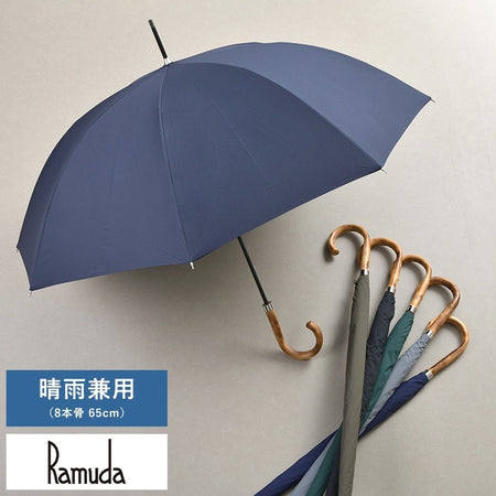 Long umbrella Ramuda Long Umbrella for Sun and Rain, 8 Ribs, 25.6"" Plain, JAPAN